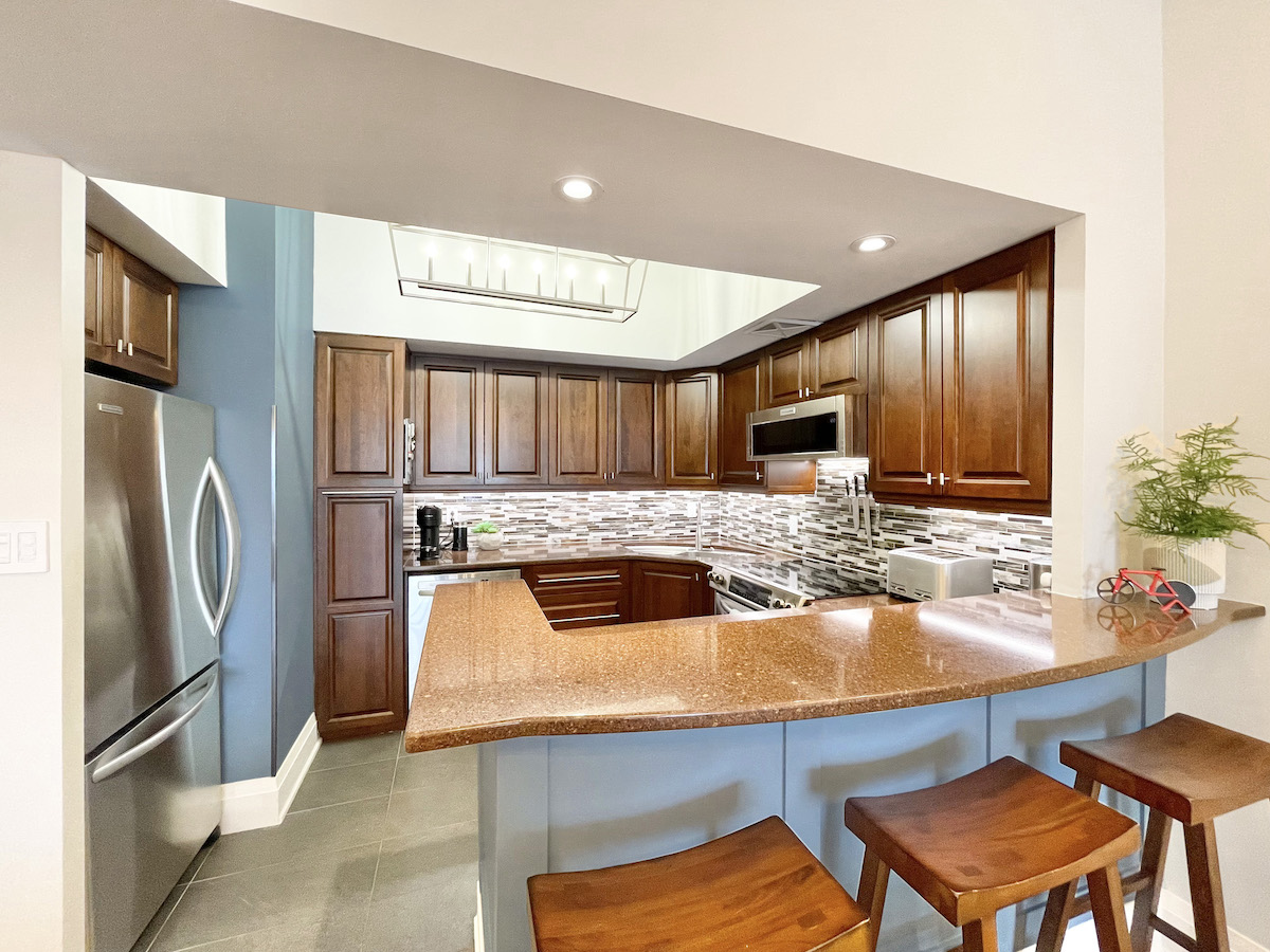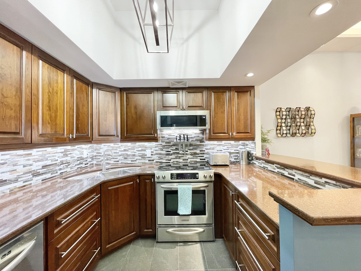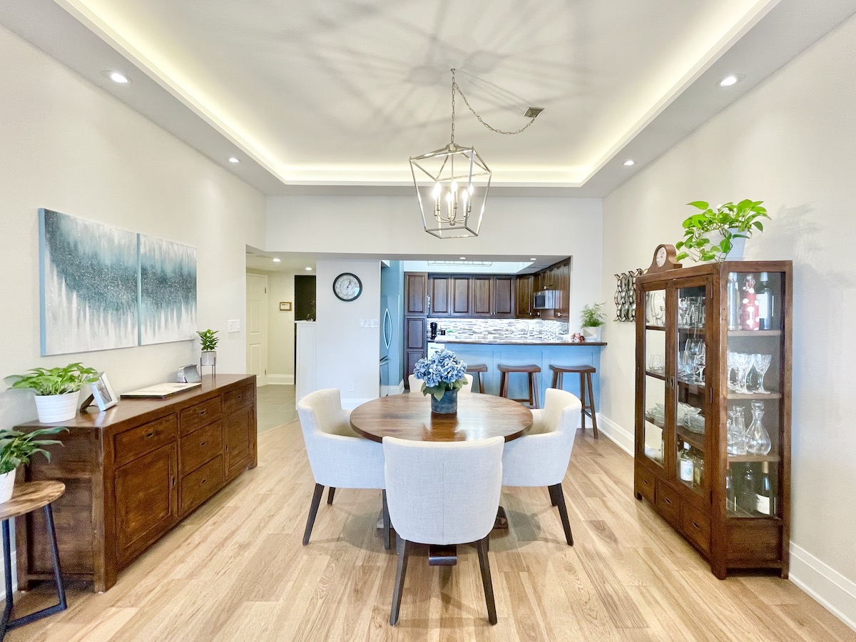 Every inch of this 1,225 square foot condo is draped in high-quality finishes. Wide-planked, engineered hardwood floors provide a seamless connection between rooms. The open-concept living area is illuminated with a fully-integrated lighting system that can be controlled through an app. 10-foot ceilings are tastefully punctuated by coves, creating soft indirect lighting that caters to any mood. Meanwhile, prepare meals and entertain guests in your upgraded kitchen overlooking the dining/buffet area. A breakfast bar anchors the space, surrounded by stainless steel appliances, solid wood cabinetry and luxurious countertops.